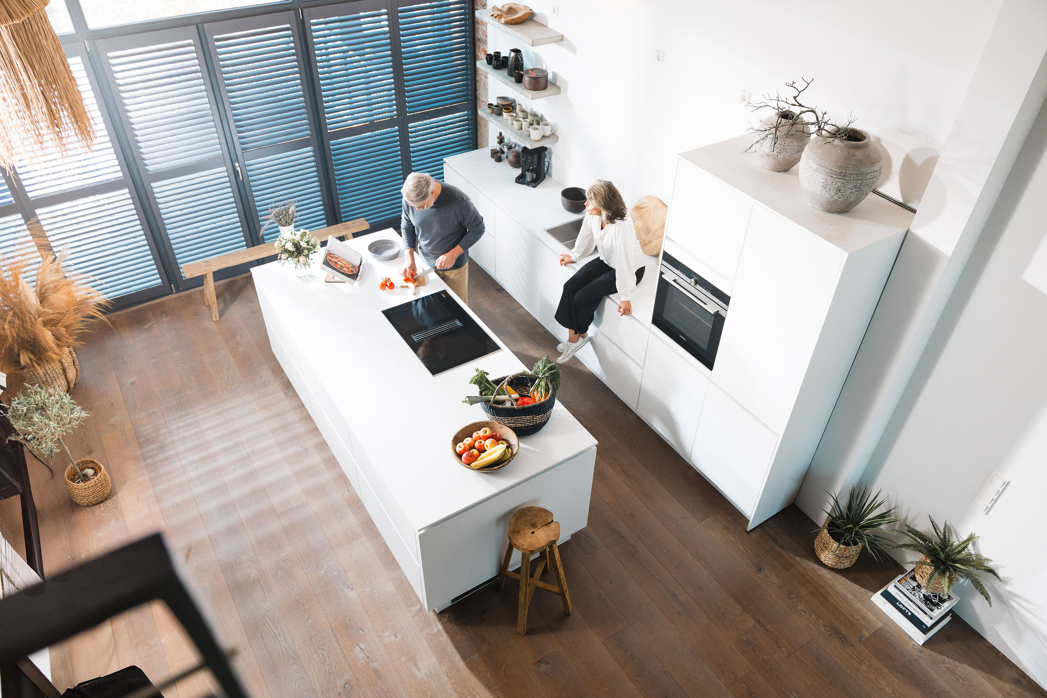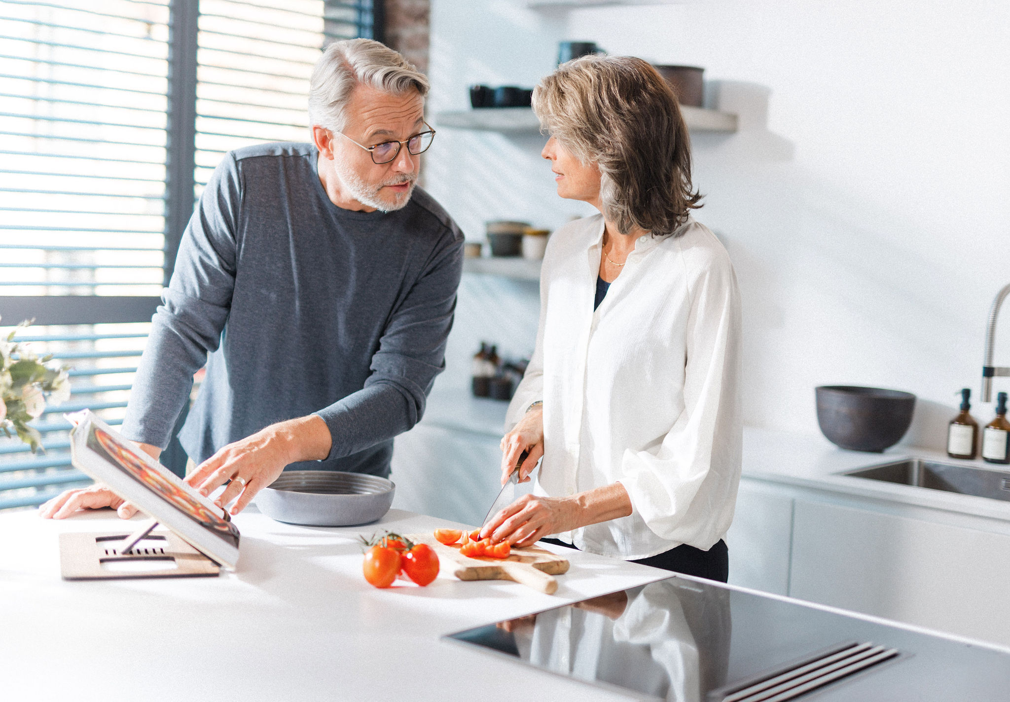Die Produktion wurde so geplant, dass in kurzer Zeit maximal viele verwertbare Motive entstehen: • Location-Tag: echtes Zuhause, echtes Lichtgefühl, natürliche Interaktion des Paars – warme, ruhige Bilder mit klaren Blickachsen. • Studio-Tag: kontrollierte Setups in der gebauten Utility-Kulisse – saubere Produktinszenierung, Details, Varianten und klare Layout-Flächen. In beiden Setups lag der Fokus auf Konsistenz: ein Look, der technisch präzise ist, aber menschlich bleibt.