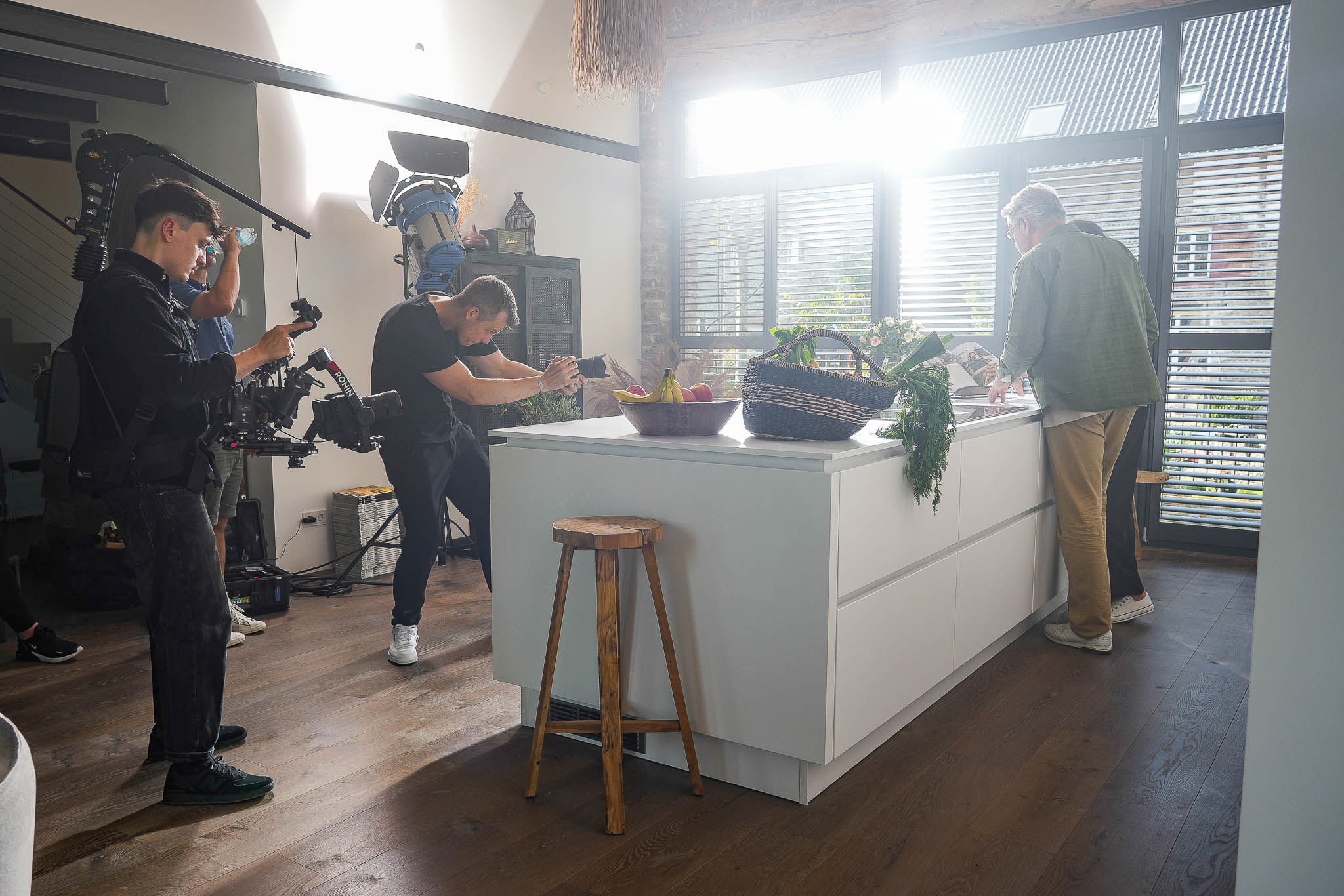 Neben Kamera/Fotografie wurde die Produktion als Full-Service organisiert: Casting, Crew, Licht, Locations, Model-Verträge sowie eine Produktionsversicherung. Der Studio-Tag bei Emotion4Life wurde genutzt, um die Kulisse gezielt auf die Produkte auszurichten und zusätzliche Motive für Utility/Küche effizient nachzudrehen.